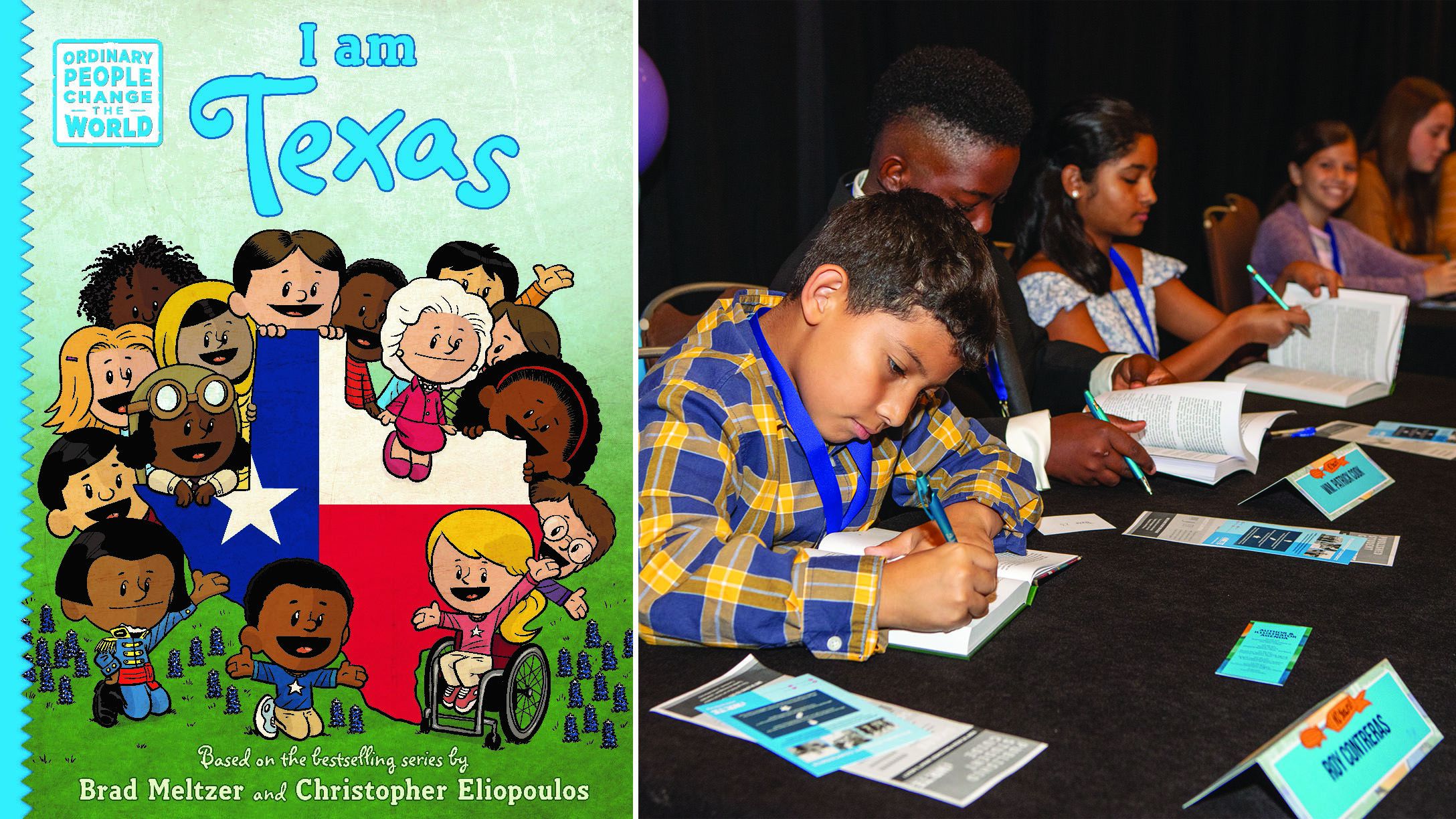The iWrite Organization, The Byran Museum, illustrators Meltzer and Eliopoulos, H-E-B and Phillips 66 are behind the book.