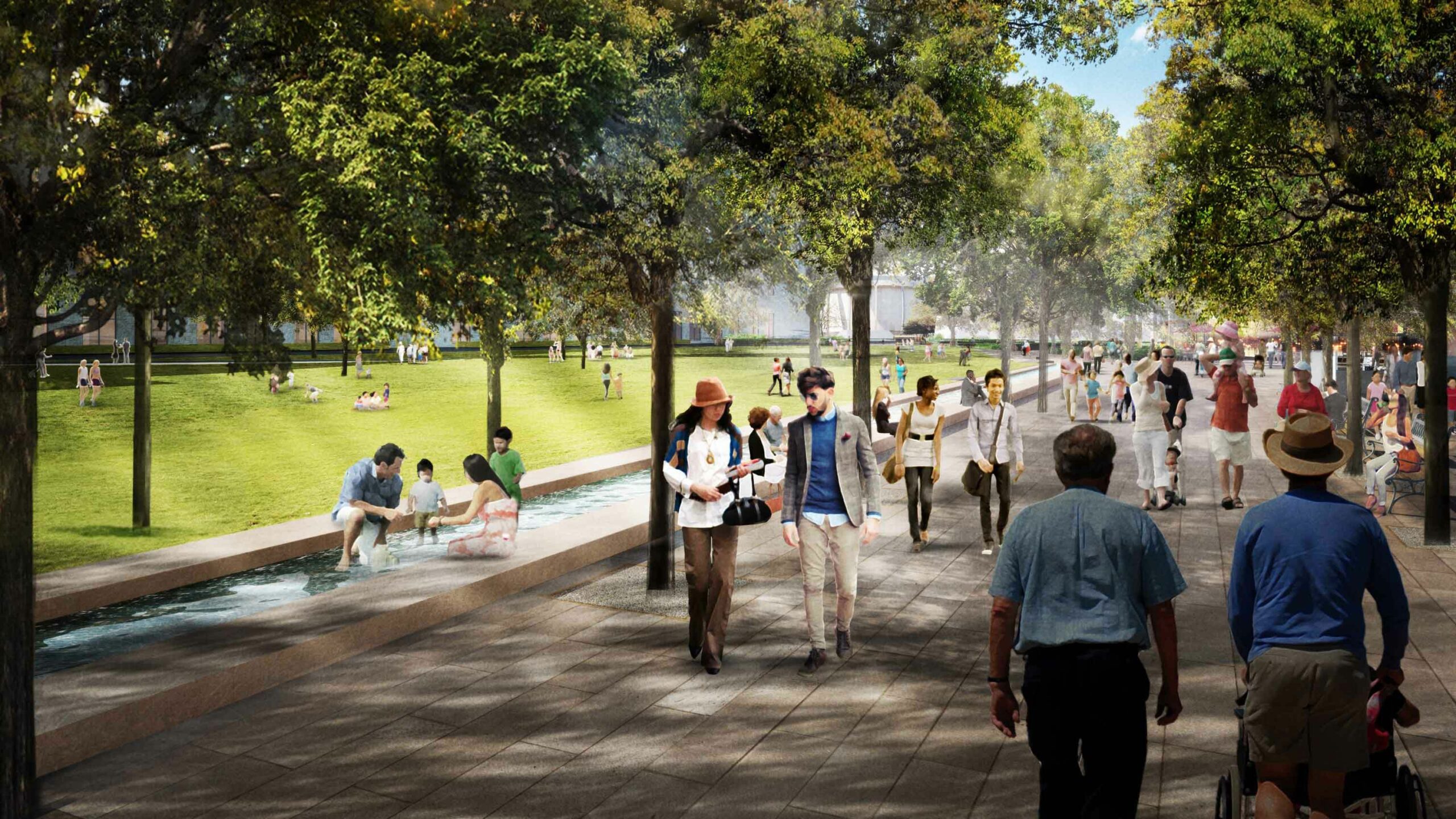 The project will include a shaded promenade, the Shallows water feature and a lawn for large events up to 15,000 people. The park will also have Wi-Fi.