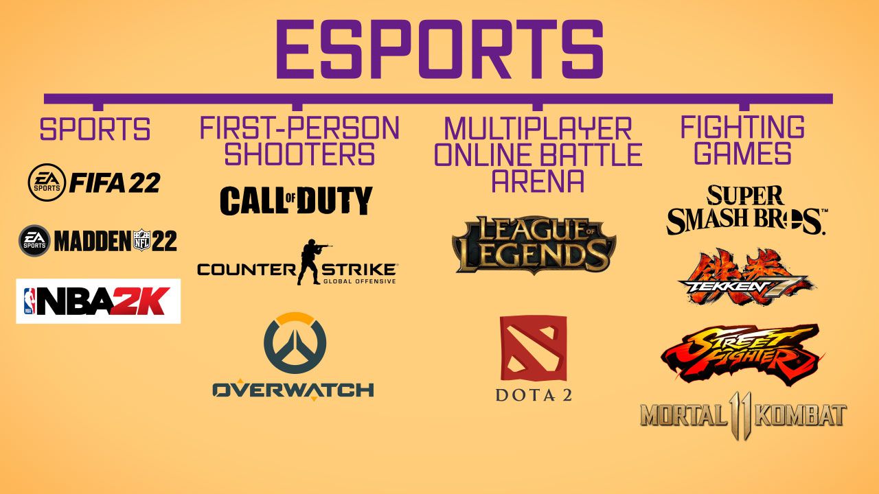 There are a variety of genres of games included in the esports umbrella: sports, first-person shooter, fighting, just to name a few.