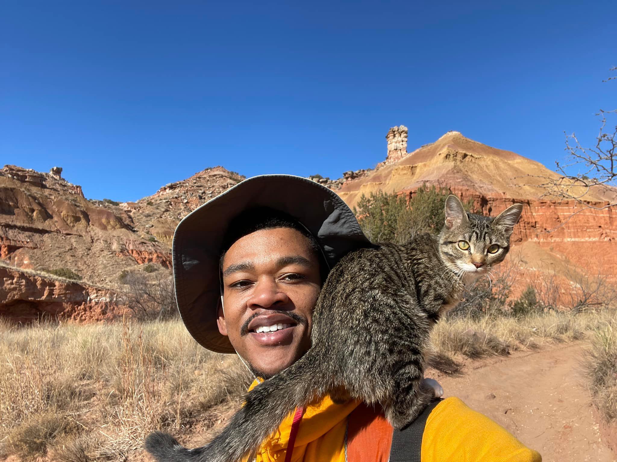 Man takes his cat hiking through Texas