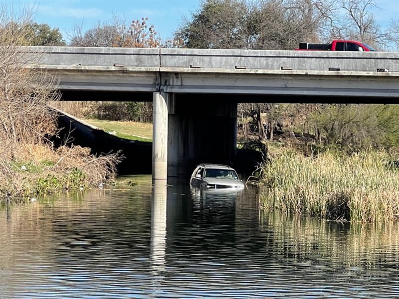 Police found a silver SUV sitting in the river submerged in the water. There was no damage to the highway above. A fence near the river suffered some damage, but it is unclear if that is a result of the accident.