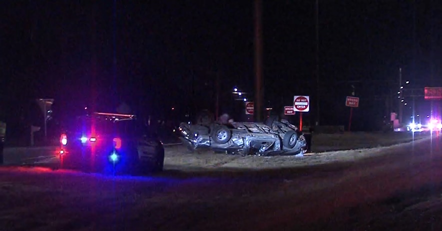 Moments later, the man sped off in his vehicle again, but he ran over spike strips in the road that were set up by police. A short chase ensued and the man then drove off the road on Highway 85, just south of Houston Street, police said.