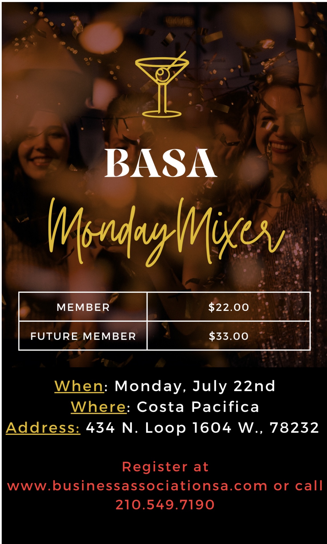 Monday Mixer @Costa Pacifica Join us for some fun and networking! + Add to Google Calendar + iCal / Outlook export The event is finished. Date Jul 22 2024 Expired! Time 4:00 pm - 6:00 pm Local Time Timezone: America/New_York Date: Jul 22 2024 Time: 6:00 pm - 8:00 pm Location Costa Pacifica 434 N Loop 1604 W Ste. 2101, San Antonio, TX 78232 Category All Chapters Happy Hour Mixer Share this event X