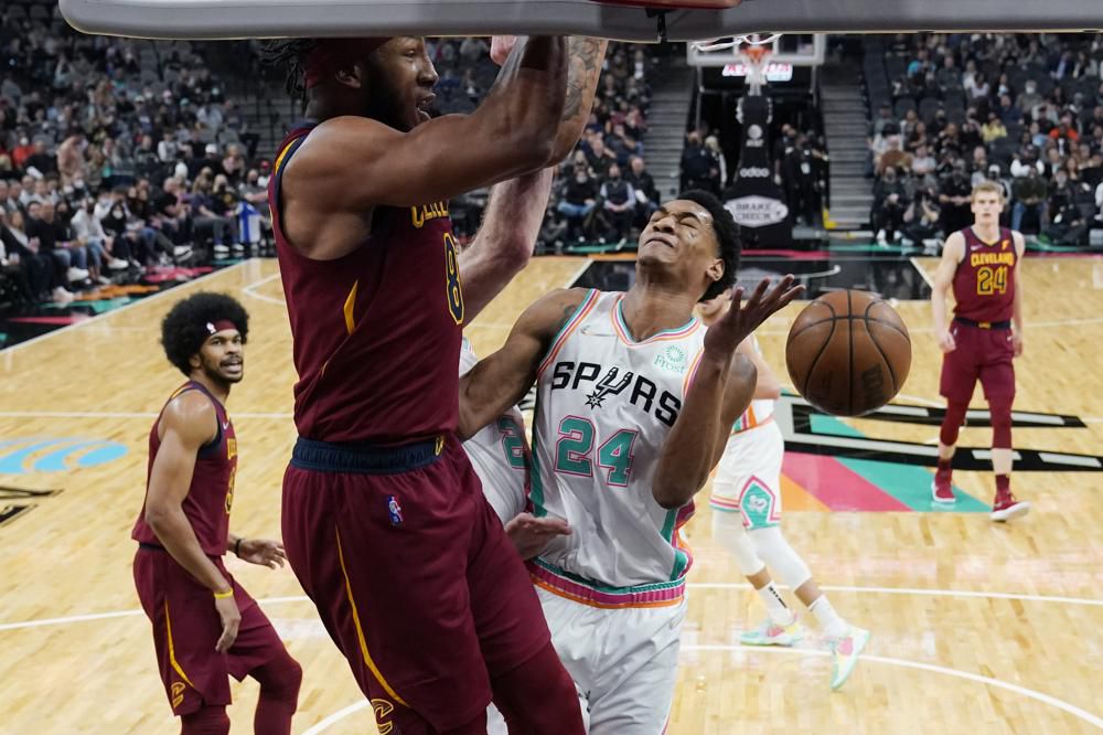 The Spurs struggled against Cleveland’s frontcourt of 7-footers Evan Mobley and Lauri Markkanen, and the 6-11 Allen.