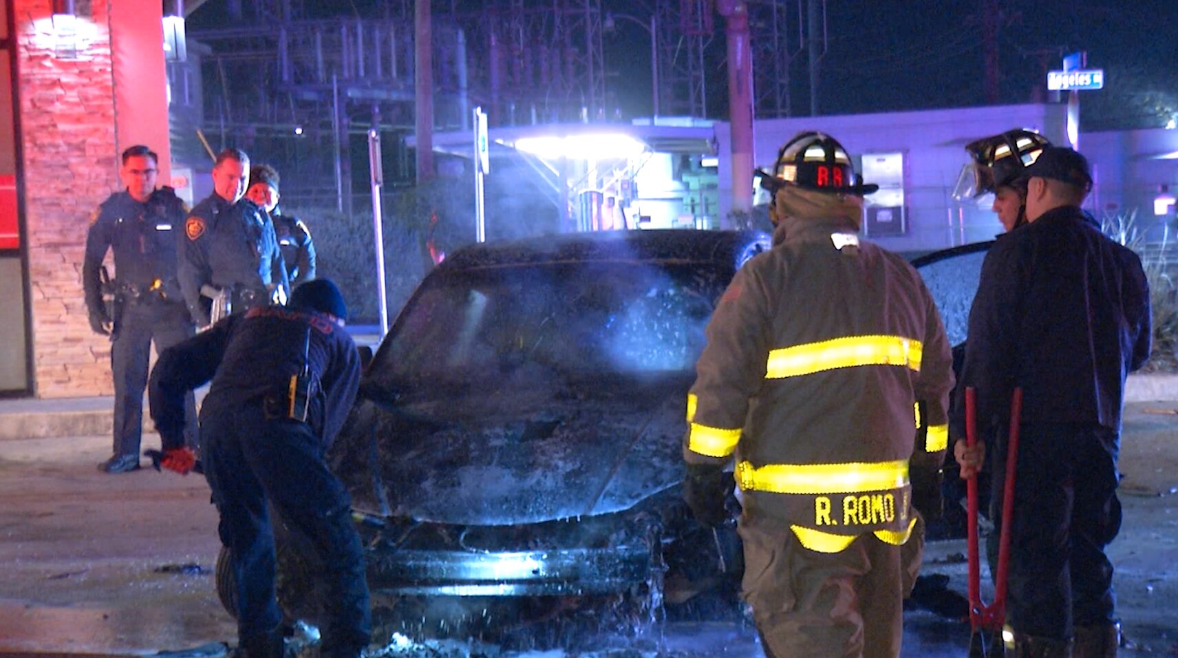 San Antonio police officers rescued two women from a burning vehicle after a crash on the city’s North Side early Thursday morning.